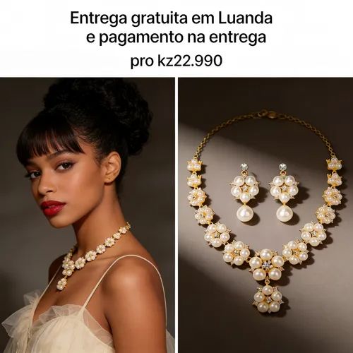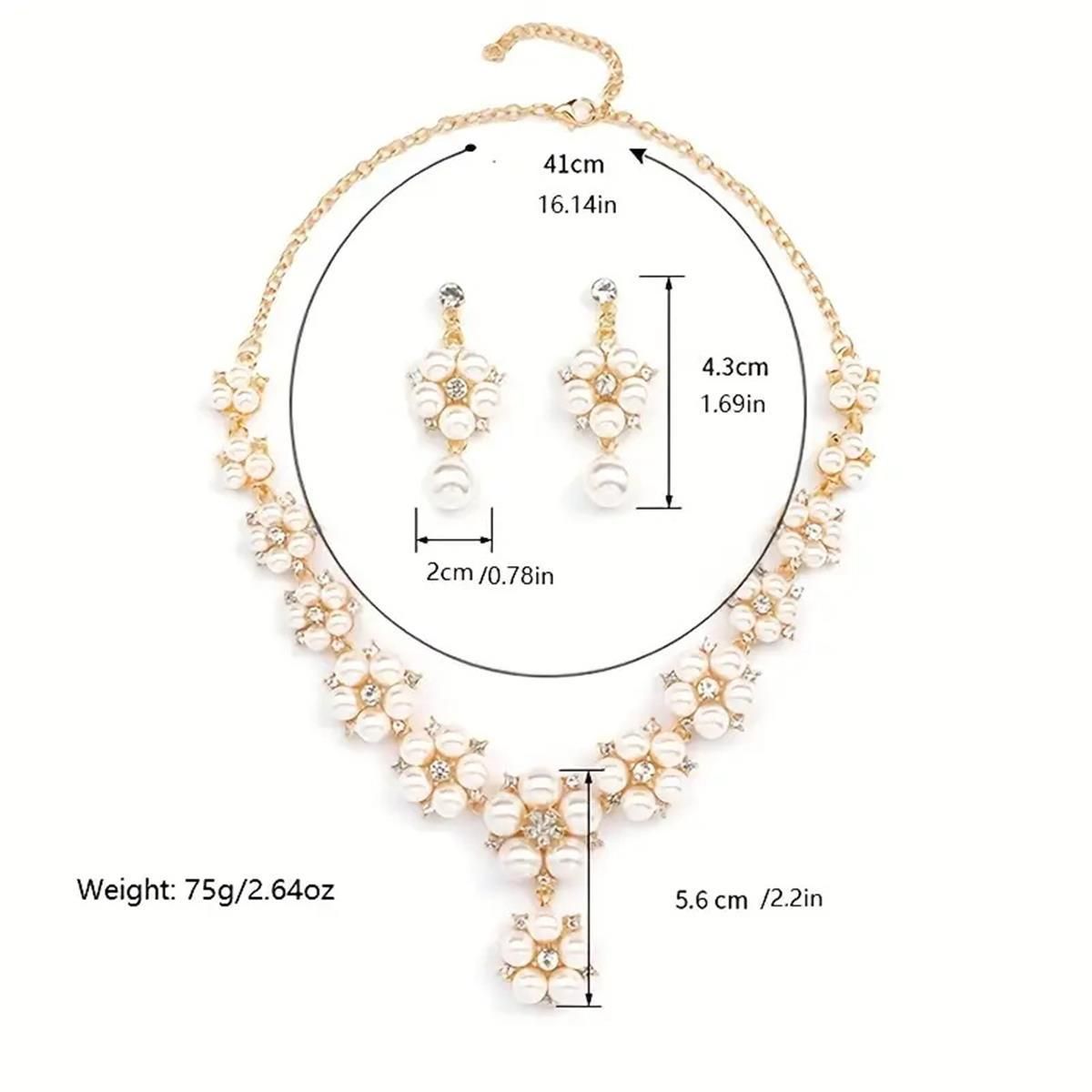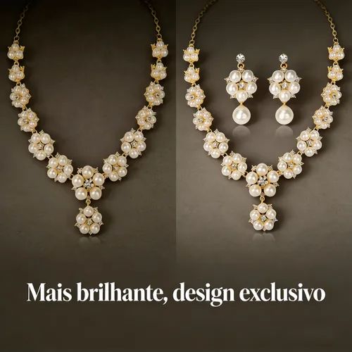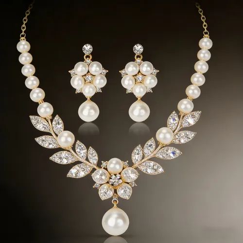 🔥💕Conjunto de Colar e Brincos (Pérola Falsa + Zirconia) – Estilo Vintage Folha Flor, Ideal para Noivas, Festas e Dia a Dia💃💓
